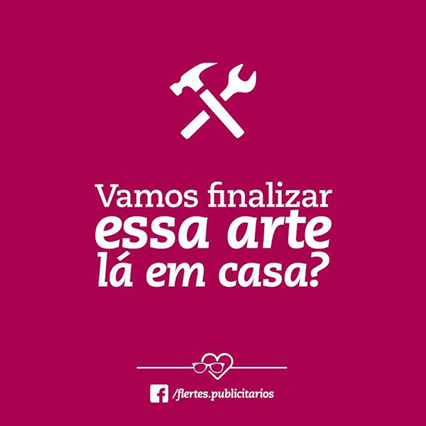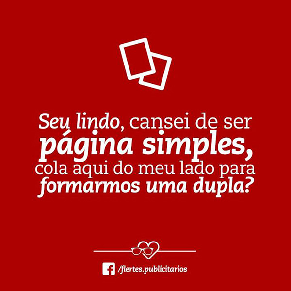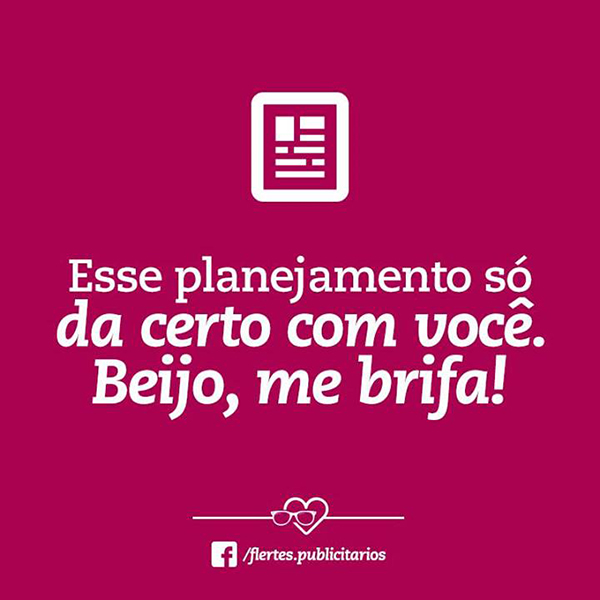 Seguindo esse mesmo caminho,seis amigas publicitárias criaram a fan page “Flertes Publicitários” que usam da linguagem de trabalho de profissionais da comunicação para criar trocadilhos divertidos.