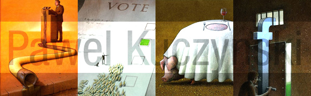 O ilustrador polonês Pawel Kuczynski expõe em suas obras temas como guerras, politica, solidão e alcoolismo, carregados de simbolismos que nos fazem pensar principalmente a respeito dos regimes políticos que independente de serem comunistas ou capitalistas apresentam-se autoritários, manipuladores e exploratórios, gerando tantas consequências negativas à sociedade.