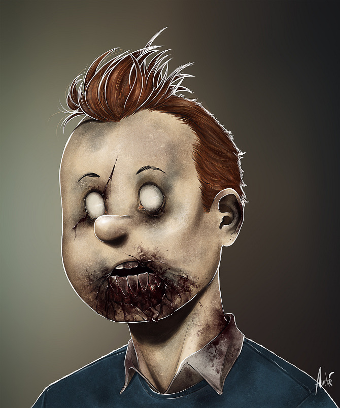 O artista fez a série Zombie Portraits (Retratos Zumbi) na qual famosos personagens de desenhos, games e HQs são transformados nos assustadores mortos vivos. Veja abaixo alguns dos trabalhos.